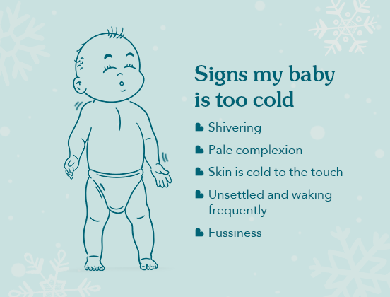 If your baby is too cold you may notice: shivering pale complexion, skin cold to the touch, waking mid sleep.
