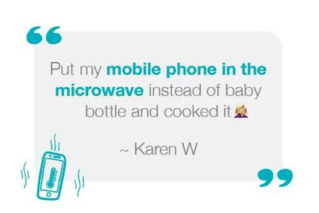 Some mums, like Alana Werner and Tegan Smith, tried to unlock their house with their car key. Others (Lydia Kagesh) accidentally poured juice into their tea because they thought it was milk. However, at least Lydia was able to text her friends about it, whereas Karen Wride lost her phone when she accidentally put her mobile in the microwave instead of the baby bottle and cooked it!