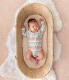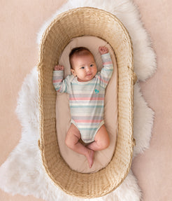 Perfect for in-between seasons this mid-weight fabric offers just the right balance of warmth and breathability. Soft, natural cotton with a touch of elastane to support your baby's movements offering a snug, yet flexible fit for natural sleep positions.