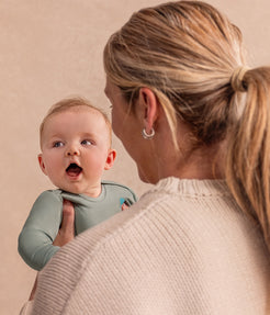 Perfect for in-between seasons this mid-weight fabric offers just the right balance of warmth and breathability. Soft, natural cotton with a touch of elastane to support your baby's movements offering a snug, yet flexible fit for natural sleep positions.