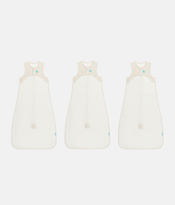 This Sleep Bag Bundle includes 3 x Sleep Bag Sleeveless 0.2 TOG Cotton Tan Breton Stripe