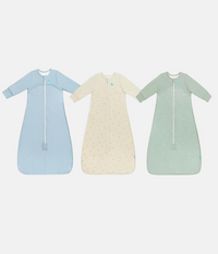 This bundle includes 1 x Sleep Bag Long Sleeve 1.0 TOG Cotton Powder Blue Twinkle, 1 x Sleep Bag Long Sleeve 1.5 TOG Cotton Oatmeal Twigs and 1 x Sleep Bag Long Sleeve 1.5 TOG Cotton Olive Twigs