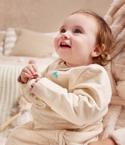 Snuggly soft cotton with luxurious GOTS-certified organic Australian merino wool - worth the investment for your winter wardrobe. Merino Wool is ultra-soft, breathable, and moisture-wicking , perfect for delicate skin while helping maintain a cosy temperature and warmth without extra weight.