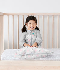 At Love to Dream we use the industry-recognised measurement system, called TOG. TOG stands for Thermal Overall Grade and helps simplify the process of choosing the right garment/s for your baby. Put simply: The lower the TOG rating, the lighter the fabric. The higher the TOG rating, the warmer the fabric.