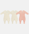 This Bundle includes 2 x Sleep Suit Long Sleeve 1.5 TOG Cotton Oatmeal Twigs and 1 x Sleep Suit Long Sleeve 2.5 TOG Cotton Rose Pebbles