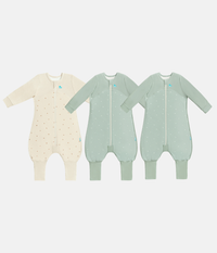 This Sleep Suit Bundle includes 1 x Sleep Suit Long Sleeve 1.5 TOG Cotton Oatmeal Twigs and 2 x Sleep Suit Long Sleeve 1.5 TOG Cotton Olive Twigs