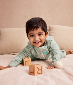Designed for cooler nights with a brushed cotton fleece interior offering warmth, without added weight. A breathable cotton rich outer layer to promote airflow, helping to regulate your baby's temperature and prevent overheating.