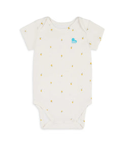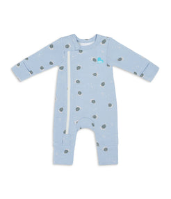 The Spring Newborn Bundle includes 1 x Swaddle Up™ 1.0 TOG Cotton Mist Blue Turtally, 1 x Romper Viscose from Bamboo Mist Blue Turtally and 1 x Bodysuit Short Sleeve Viscose from Bamboo Cream Lemons