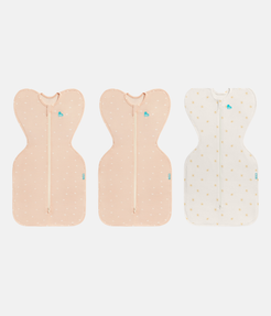 This Starter Bundle includes 2 x Swaddle Up™ 0.2 TOG Viscose from Bamboo Blush Hearts & 1 x Swaddle Up™ 0.2 TOG Viscose from Bamboo Gold Sunny