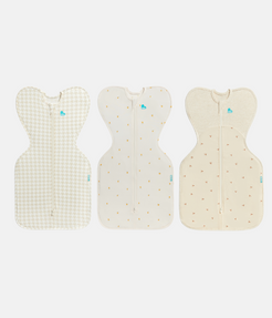 This Starter Pack includes 1 x Swaddle Up™ 1.0 TOG Cotton in Tan Houndstooth, 1 x Swaddle Up™ 1.0 TOG Viscose from Bamboo in Cream Lemons & 1 x Swaddle Up™ 1.5 TOG Cotton in Oatmeal Twigs.