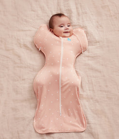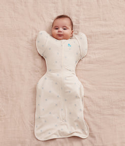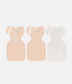 This Transition Bundle includes 2 x Swaddle Up™ Transition Bag 0.2 TOG Viscose from Bamboo Blush Hearts & 1 x Swaddle Up™ Transition Bag 0.2 TOG Viscose from Bamboo Mist Blue Sunny