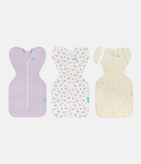 This bundle includes 1 x Swaddle Up™ Transition Bag 1.0 TOG Cotton Lilac Meadow, 1 x Swaddle Up™ Transition Bag 1.0 TOG Cotton Jacaranda Meadow and 1 x Swaddle Up™ Transition Bag 1.5 TOG Cotton Oatmeal Twigs