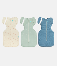 This bundle includes 1 x Swaddle Up™ Transition Bag 1.5 TOG Cotton Oatmeal Twigs, 1 X Swaddle Up™ Transition Bag 1.5 TOG Cotton Olive Twigs and 1 x Swaddle Up™ Transition Bag 2.5 TOG Cotton Storm Blue Pebbles
